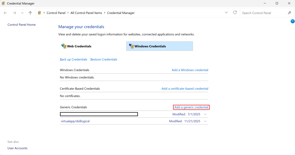 - Simpler Update. Credentials can be updated directly in Windows Credential Manager without modifying the Auth Proxy config file. After updating, simply restart the proxy to apply the changes.