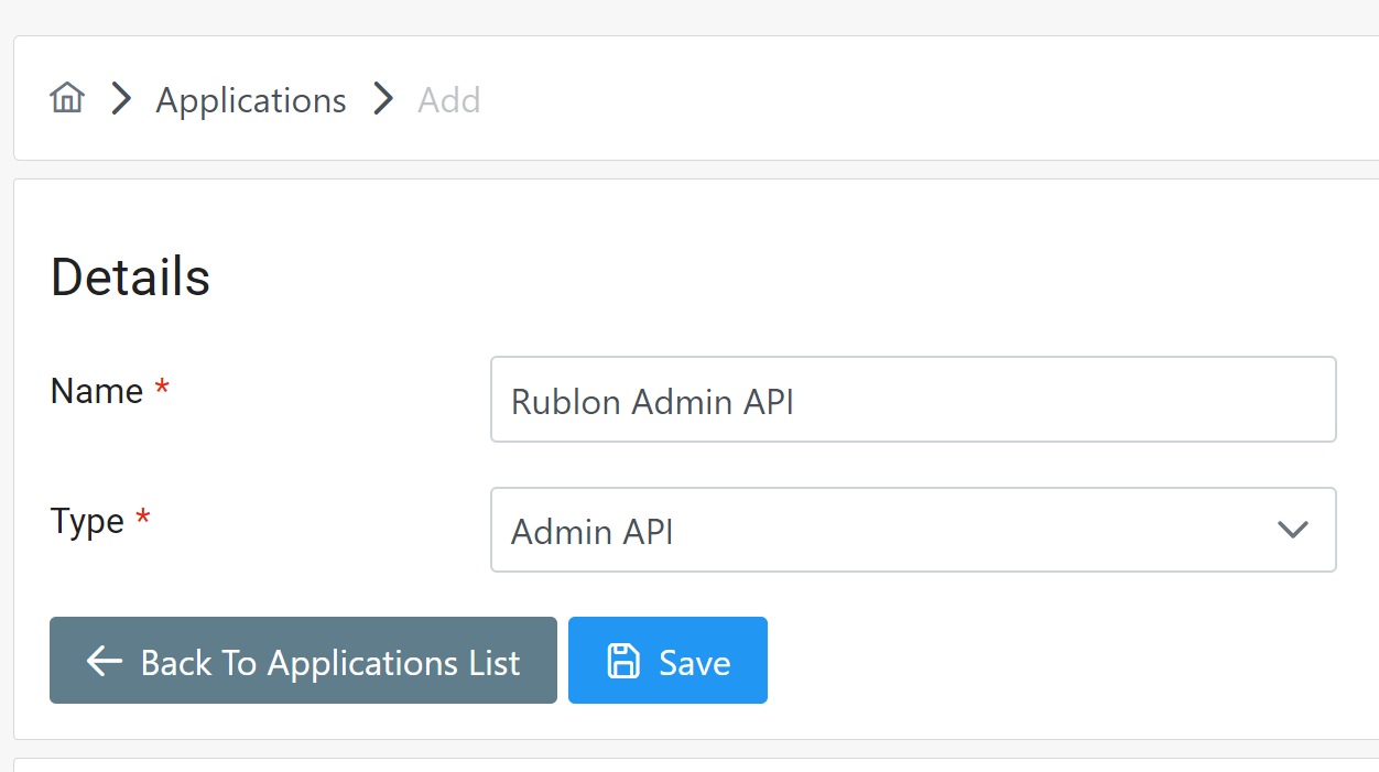 4. Set a Name for your application, e.g., Rublon Admin API.