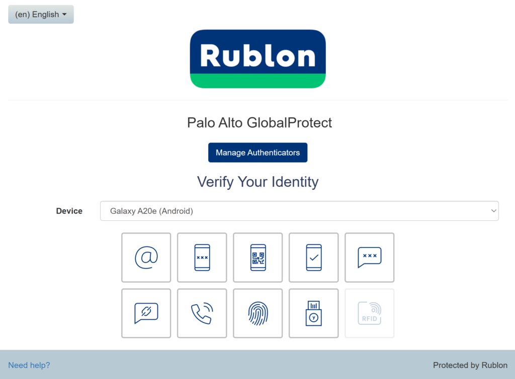 Log in to Palo Alto GlobalProtect with Rublon MFA