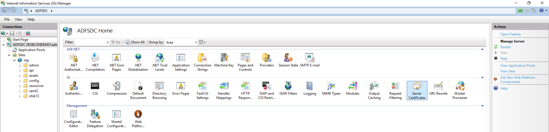 11. Purchase an SSL certificate for your server (using a fully qualified domain name) from a commercial Certificate Authority (CA) or purchase a wildcard SSL certificate. Add the SSL certificate to IIS Manager (Server Certificates icon).