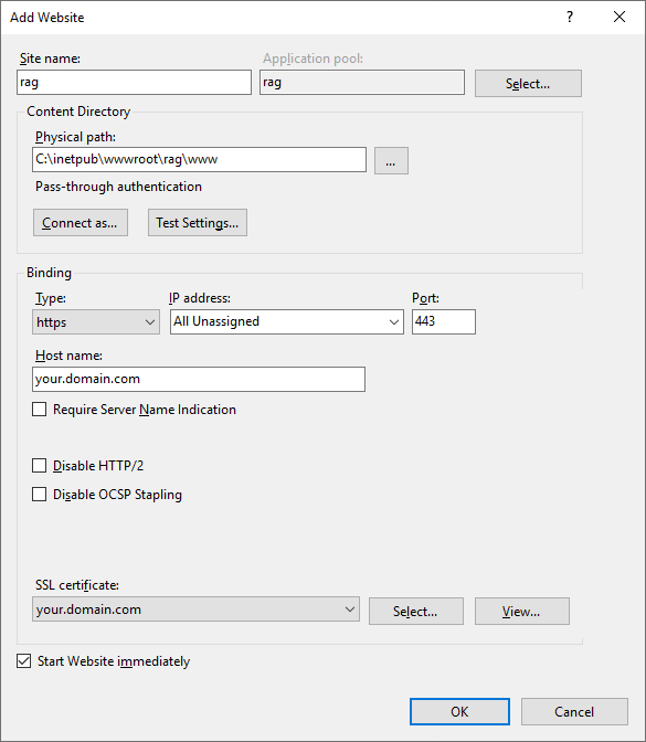 10. Download the package of Rublon Access Gateway and unzip the files into the root C:\inetpub\wwwroot directory so that your path looks as follows: C:\inetpub\wwwroot\rag.