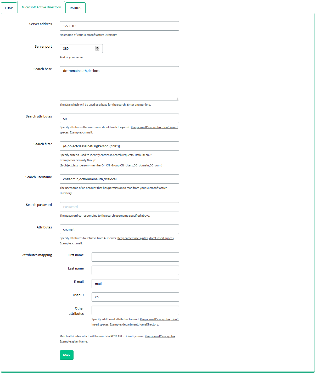 3. Click SAVE to update your Microsoft Active Directory configuration.