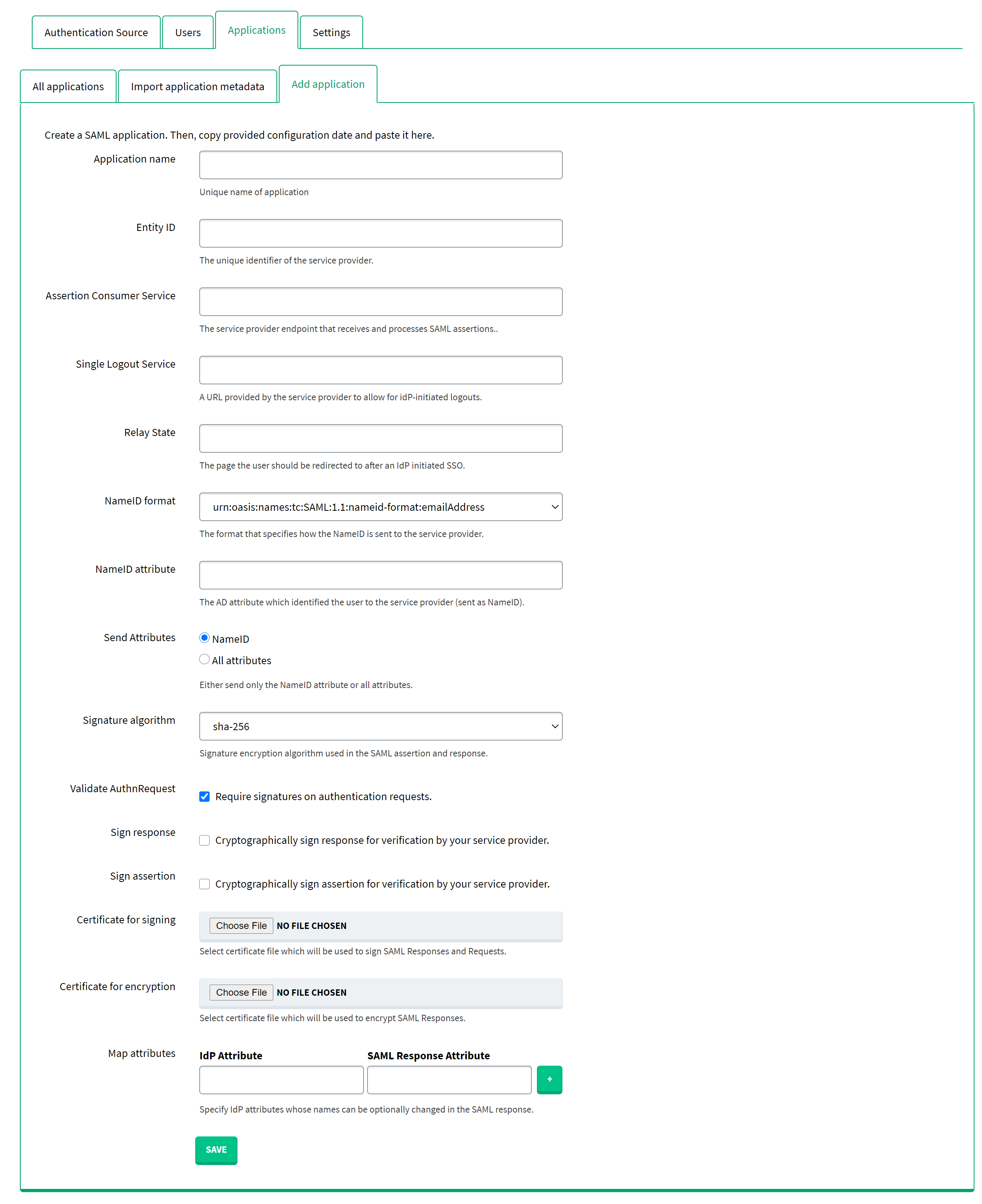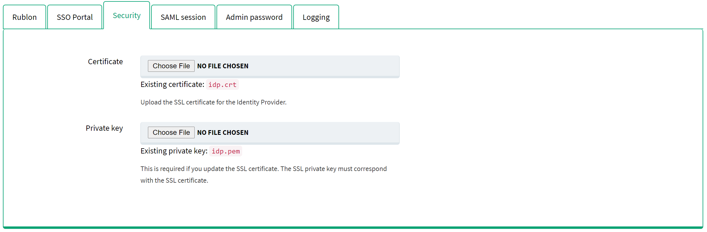 | Certificate for signing | Select the certificate file, which will be used to sign SAML Responses and Requests. |