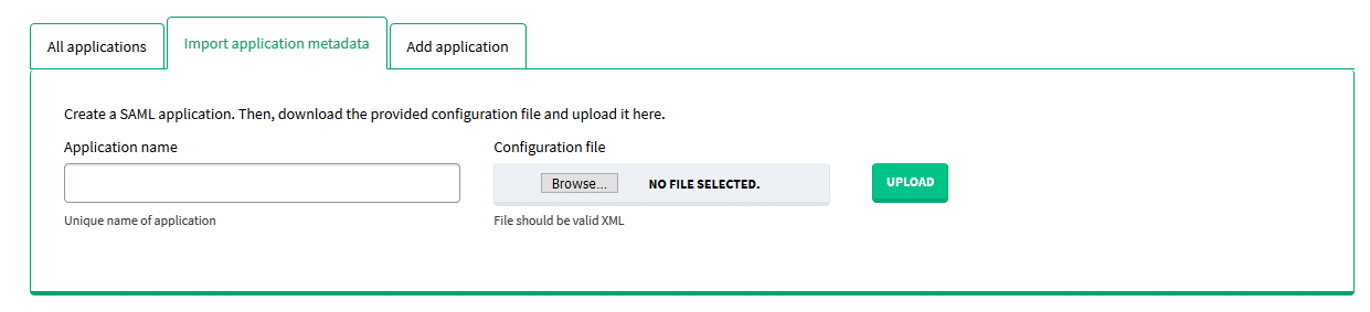 1. Sign in to your Rublon Access Gateway instance, open the Applications tab, and select the Import application metadata subtab.