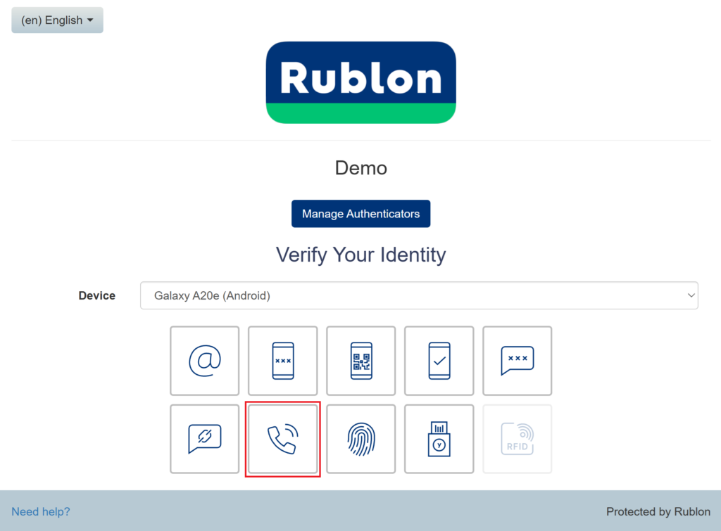 1. While on the Rublon Prompt, select the Phone Call authentication method.