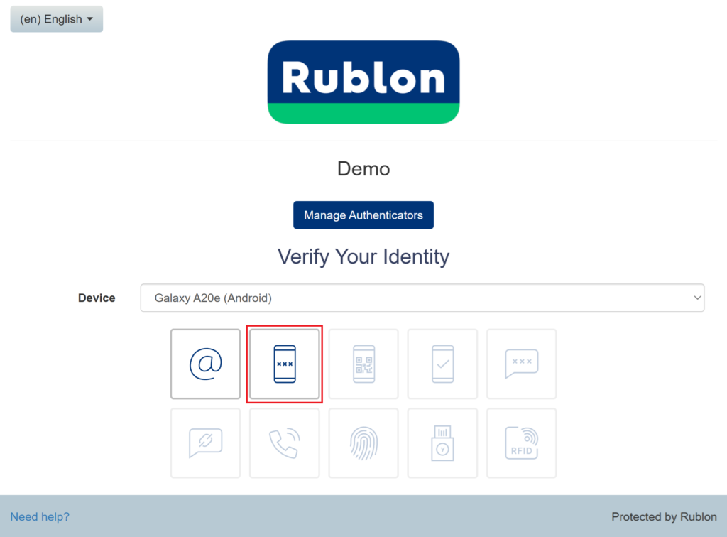 Administrators can also use a third-party app to sign in to the Rublon Admin Console.