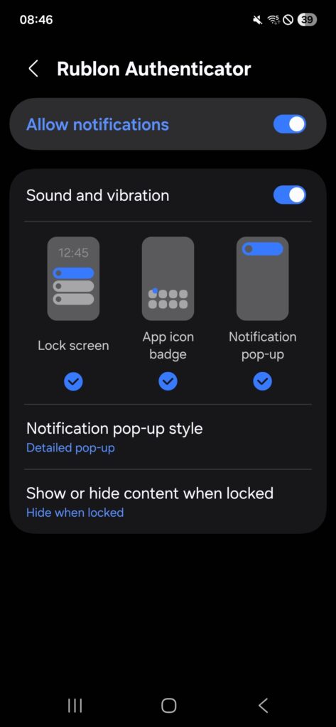 Check if notifications are enabled for your Rublon Authenticator.