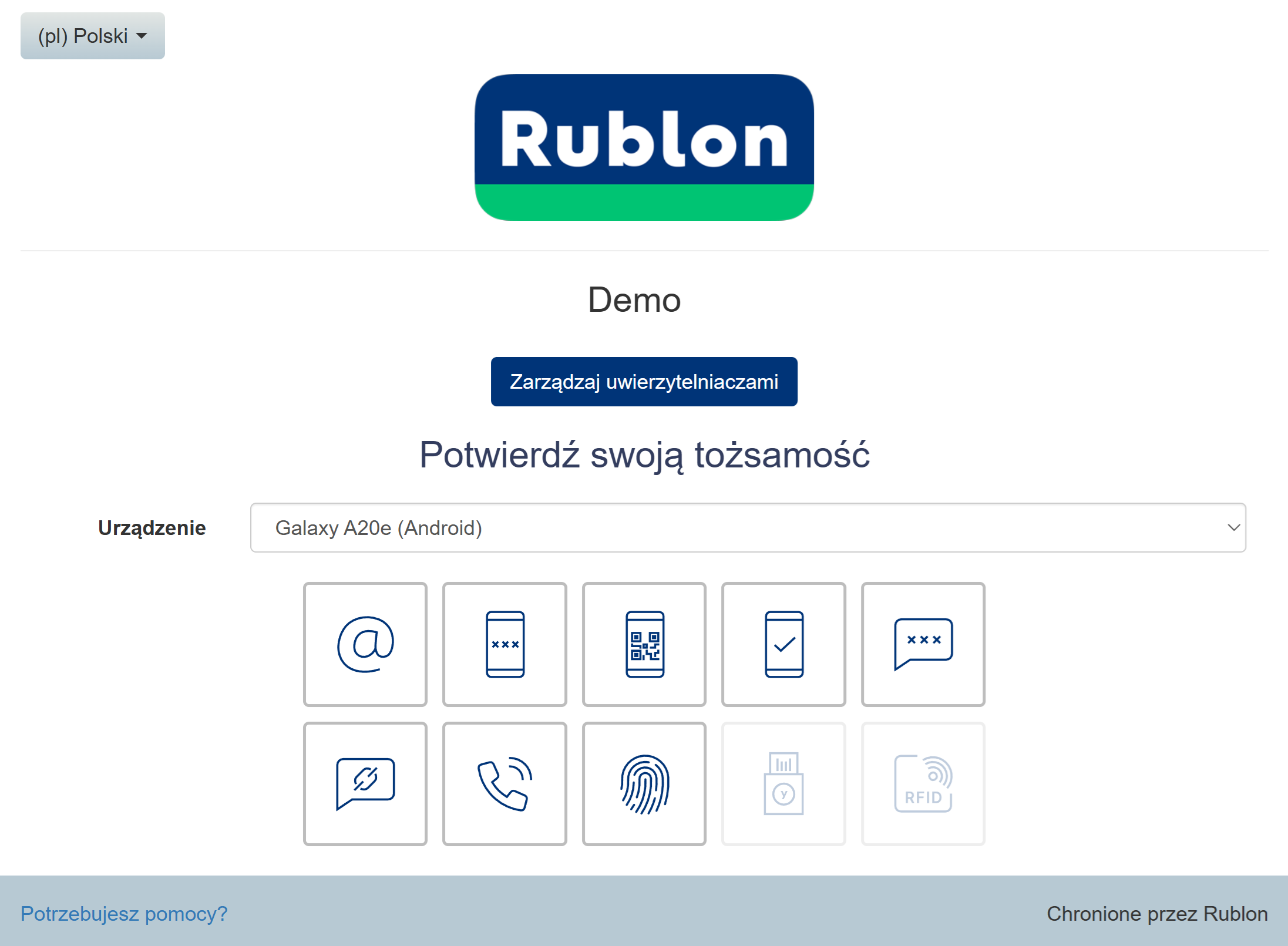 5. Aby potwierdzić swoją tożsamość, wybierz jedną z dostępnych metod uwierzytelniania.