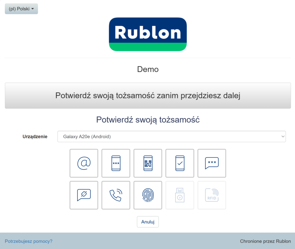 3. Pojawi się widok Rublon Prompt.