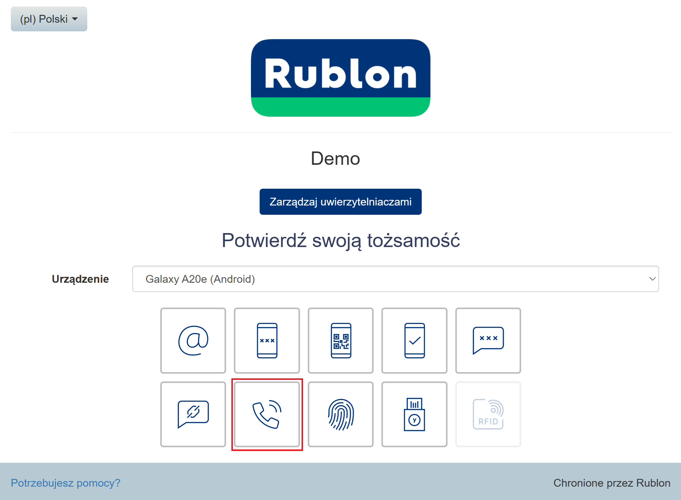 1. Będąc w widoku Rublon Prompt, wybierz metodę uwierzytelniania Połączenie telefoniczne.