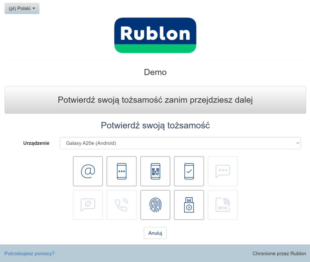 5. Aby potwierdzić swoją tożsamość przed kontynuowaniem, wybierz jedną z dostępnych metod uwierzytelniania.