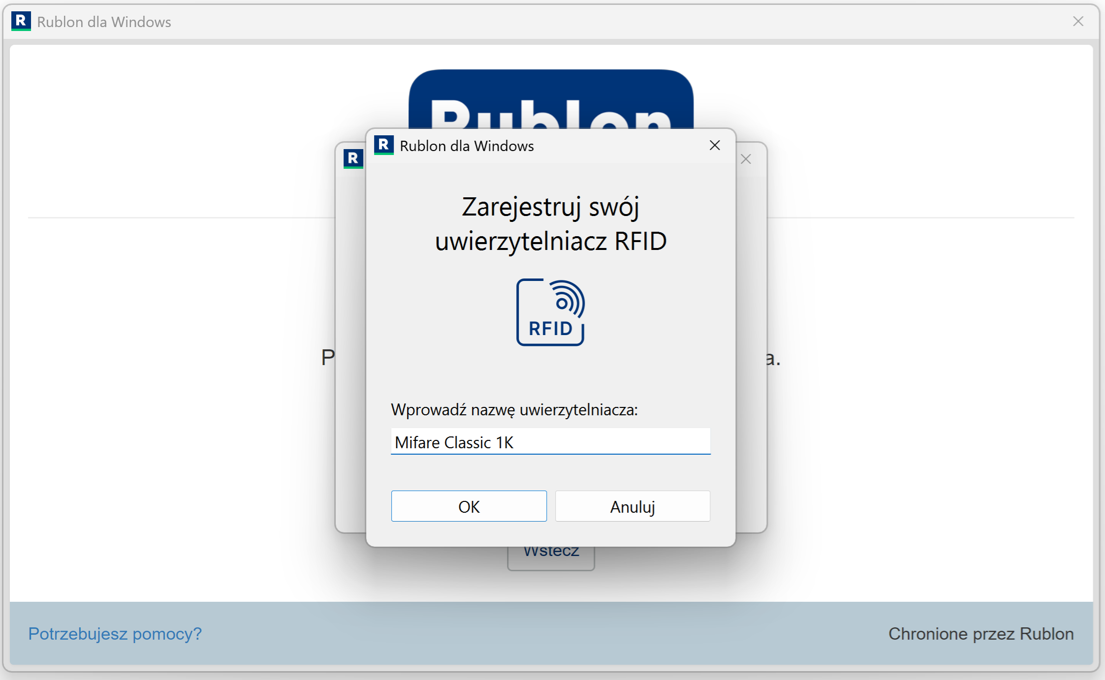 9. Wprowadź nazwę uwierzytelniacza RFID i kliknij OK.