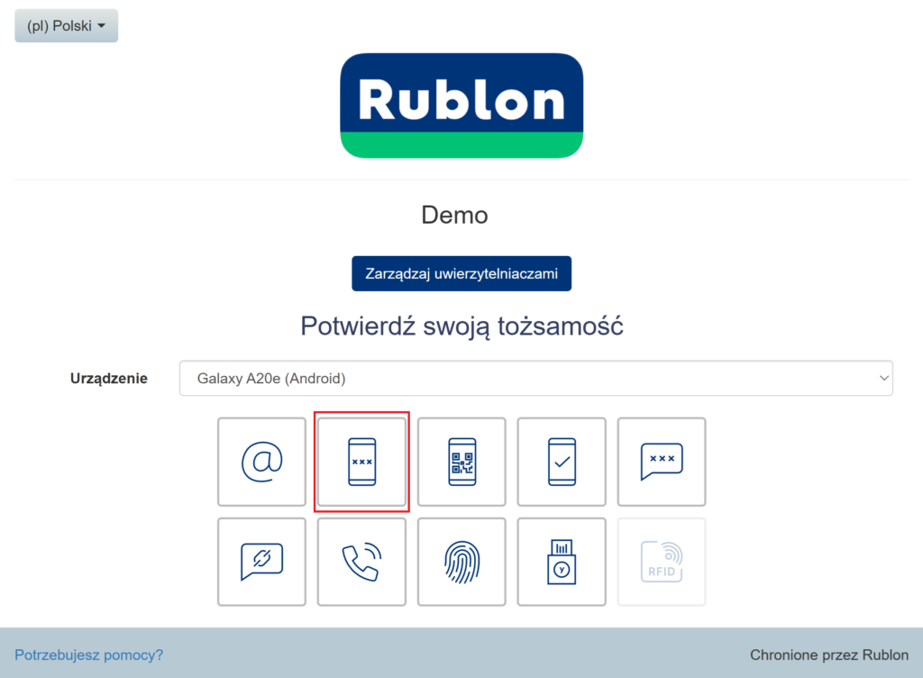 2. Pojawi się widok Rublon Prompt. Wybierz metodę uwierzytelniania Kod dostępu.