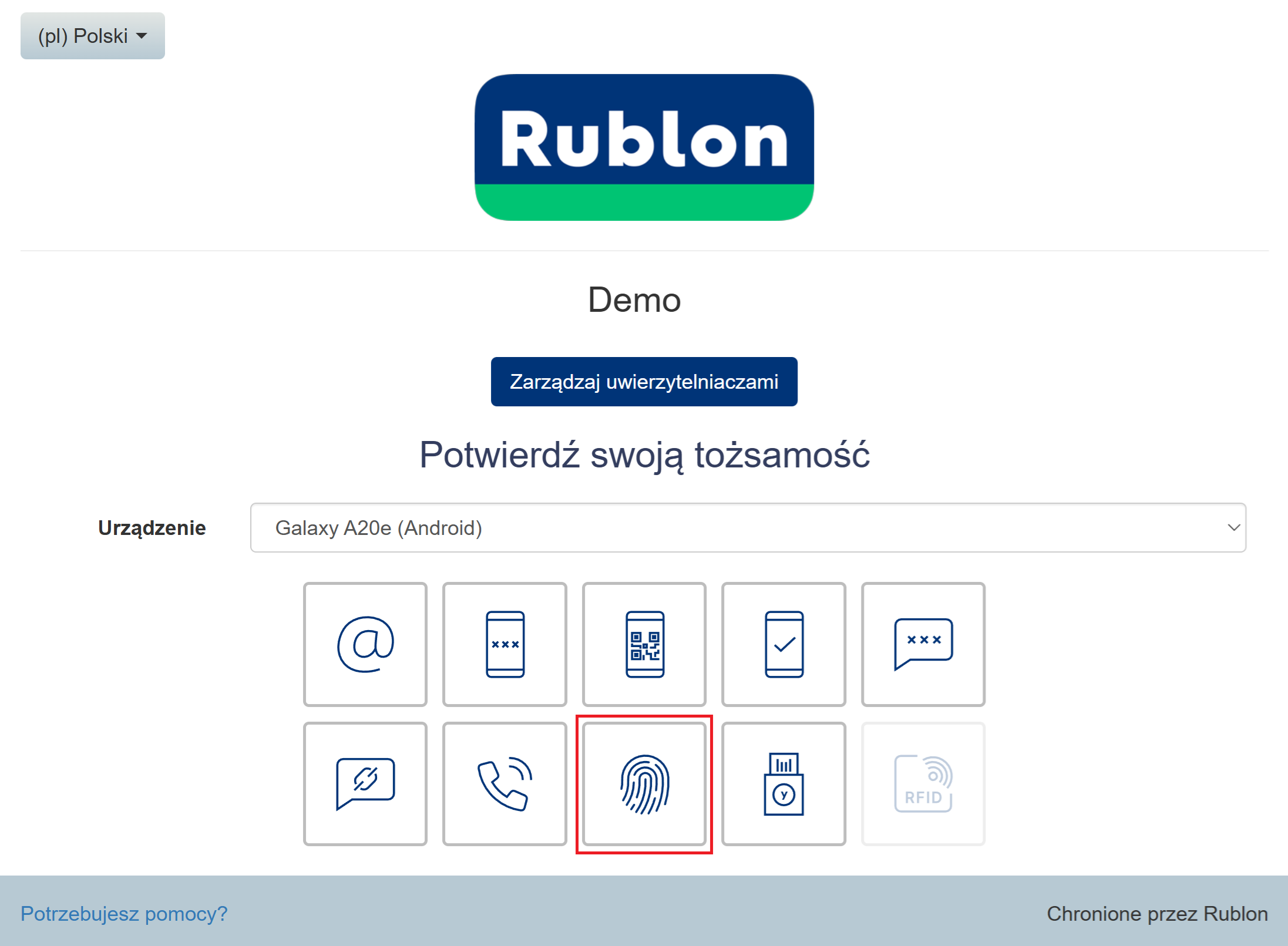 5. Aby potwierdzić swoją tożsamość, wybierz jedną z dostępnych metod uwierzytelniania.